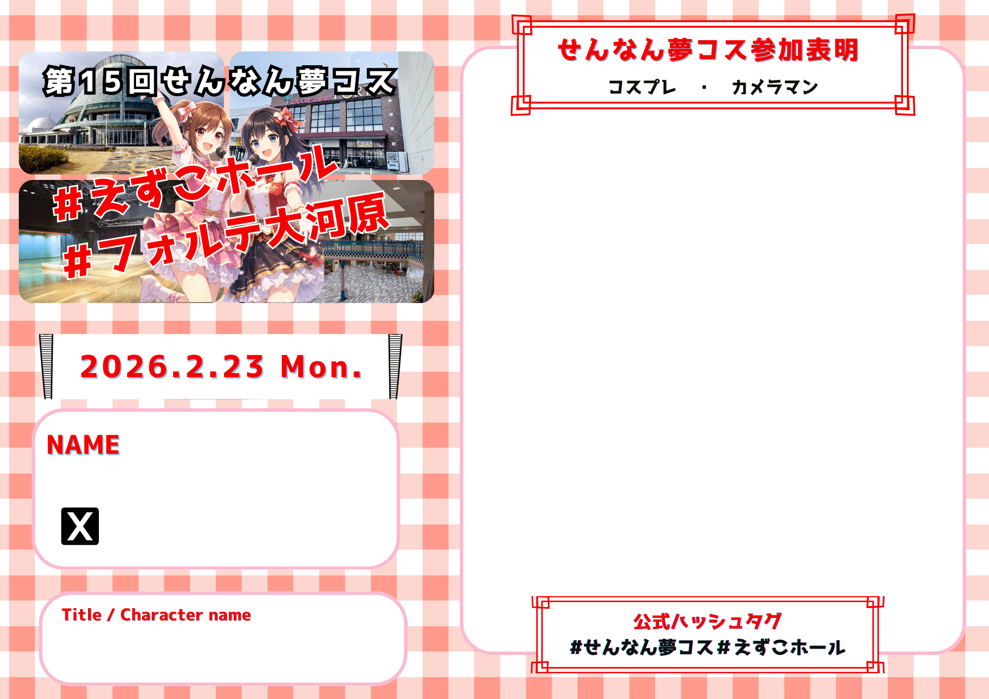 撮影映えするスポットを用意できないと、コスプレイヤーはなかなか来ませんのでご注意ください。